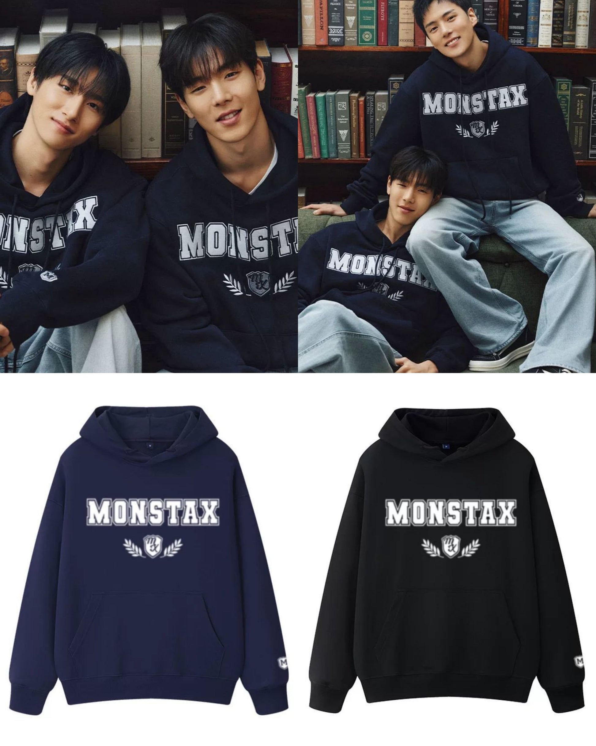 MONSTA X sweatshirt made of cotton and polyester, available in two colors, sizes S to 3XL, unisex. Check the size chart below.